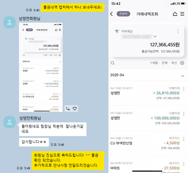 시작하기전에 저 못믿겠다고 한달동안 지켜보시던~ㅎㅎ지금은 그 누구보다 저를 믿고 따라와주시기에 감사할 따름입니다!
